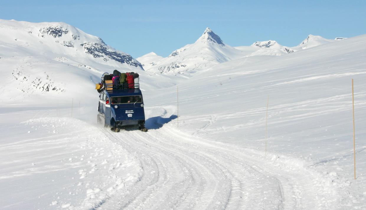 Von Mitte Februar bis Anfang Mai können sie mit dem Schneemobil von Tyin nach Eidsbugarden gelangen. Die Schneemobile wurden von Bombardier in Kanada von 1952 bis 1981 gefertigt und sind die Einzigen ihrer Art, die in Norwegen in regulärem Linienverkehr eingesetzt werden. Sie haben eine Kapazität von 14 Persons mit Gepäck. JVB hat heute 12 Bombardier Schneemobile auf den Routen Tyin-Eidsbugarden und Beitostølen-Bygdin in Betrieb und unterhält dazu eine Loipenmaschine, um die Route in jedem Wetter befahrbar halten zu können. Die Schneemobile sind im Winter die einzige Verbindung auf der wintergesperrten Straße nach Eidsbugarden im südlichen Jotunheimen.