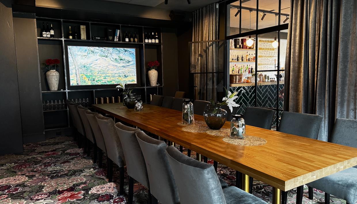 Unser Chambre Separée mit 18 Sitzplätzen passt perfekt für private Abendgesellschaften, Weinproben oder soziale Treffen! Ausgestattet mit einem großen Bildschirm und technischer Ausrüstung eignet es sich auch für Presentationen und Meetings.