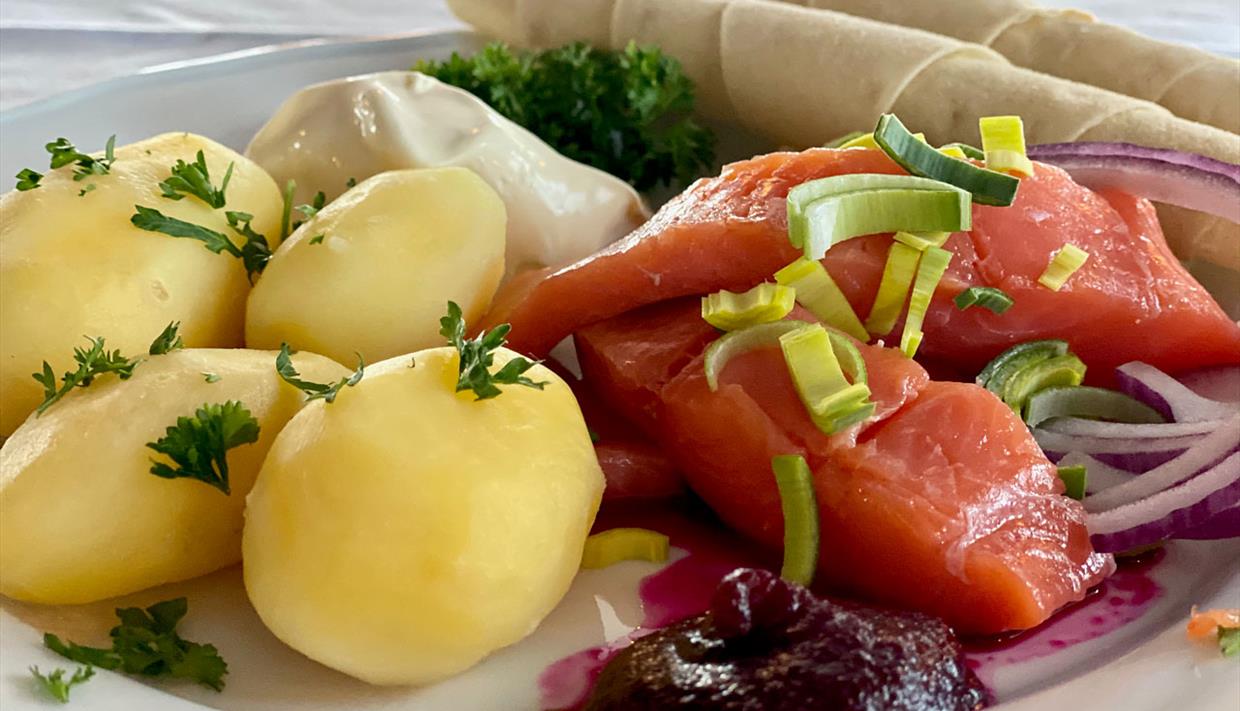 Auf dem Hof Hande Rakfisk servieren wie traditionelle Küche. Auf Anfrage können wir…