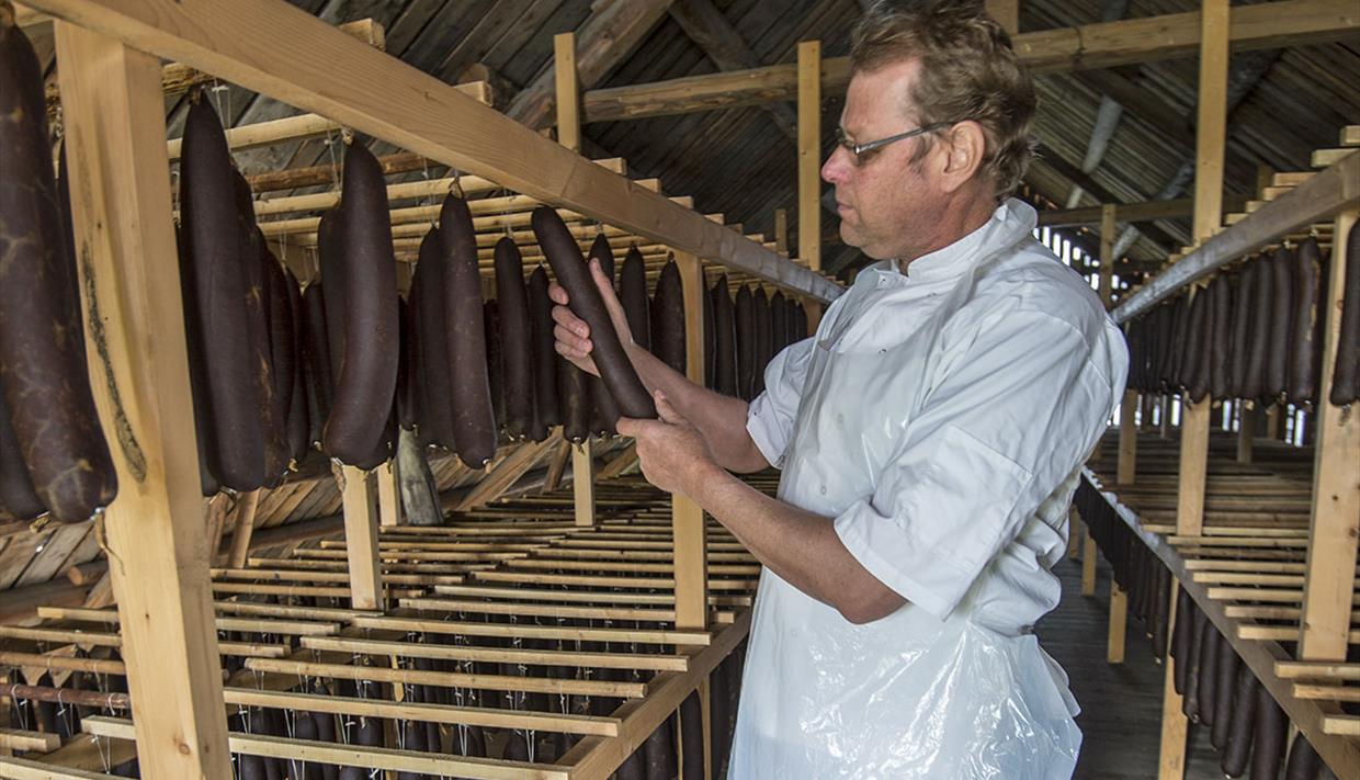 Hellekurven – eine Dauerwurst mit Rindfleisch und Innereien. Die Produktionsperiode ist Dezember bis April, und danach trocknen die Würste in der kalten und frischen Fjelluft im Speicher bis zum Juni. Der Hellekurv darf sich mit der geschützten geographischen Herkunftsbezeichnung «Kurv frå Valdres» schmücken und gehört zu den echten Perlen regionaler Spezialitäten aus Norwegen.