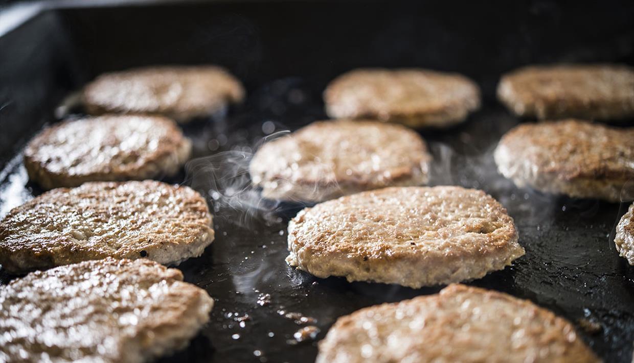 Hellekaker – ein Qualitäts-«Hamburger» aus Rind- und Schweinefleisch, saftig und kräftig im Geschmack. Die Hellekakene sind ein beliebter Snack auf den regionalen Festivals.