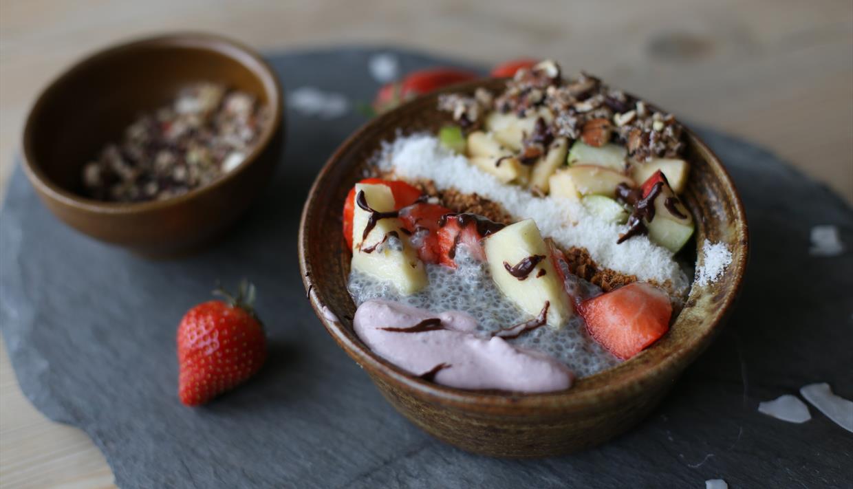 Unser Restaurant ist bekannt für seine fantastischen, schmackhaften vegetarischen Gerichte. Für besondere Anlässe können wir Wild und Bergforelle aus den umliegenden Seen anbieten. Und in der Kaffeebar können Sie sich von Cortado, Chai masala, japanischem Tee und anderen verschiedenen Teeinfusionen und hausgebackenen Kuchen verführen lassen.
