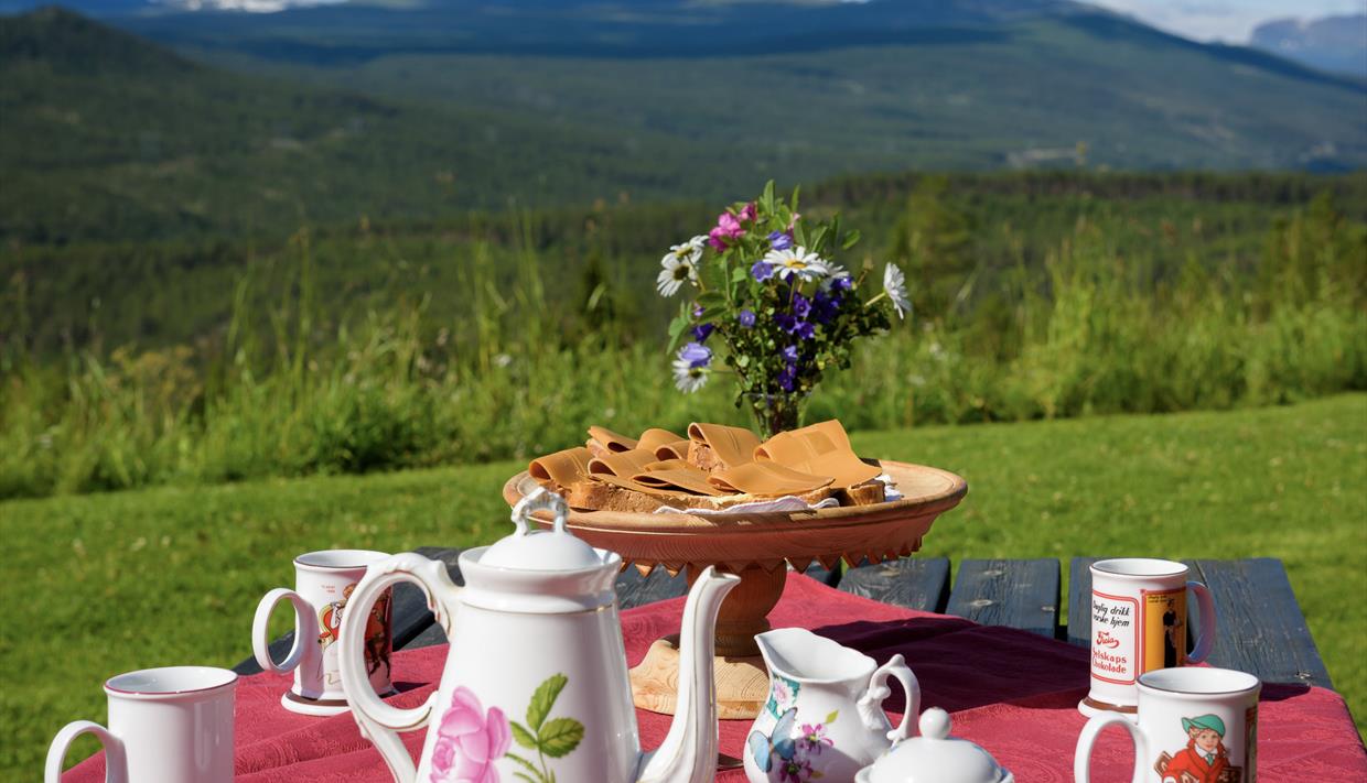 Der Mjølkevegen, die Fahrradroute von Vintra nach Gol, startet oder endet hier in Ruten. Wir sind deshalb besonders gut auf Fahrradfahrer und deren Bedürfnisse eingestellt und haben einen abschlossenen Fahrradraum und Wasch-/Reparaturmöglichkeiten. Und wir sind flexibel, was die Servierung des Essens anbelangt. Sollten sie unsere festen Mahlzeiten nicht schaffen, weil die Tour länger gedauert hat als geplant oder weil es so schön war, dass sie extra lange unterwegs sein wollten, brauchen sie nicht hungrig zu Bett zu gehen. Wir bereiten ihnen immer etwas Gutes zu.