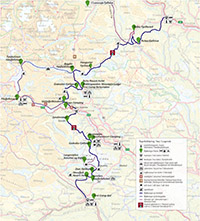 Entfernungen und Steigungen Teilstrecken Route 1 (über das Slettefjell):