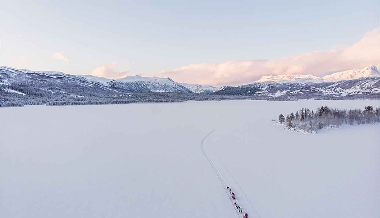 Im Laufe von drei Stunden besuchen Sie unseren Kennel und unsere 40 schönen Huskies, Sie begrüßen die Hunde, spannen Sie selbst an und lenken Sie (oder fahren mit) auf unserer 14 km langen Rundtrasse über den zugeschneiten See Øyangen. Nach der Tour servieren wir Kaffe und Tee im Camp am Seeufer.