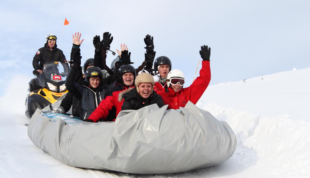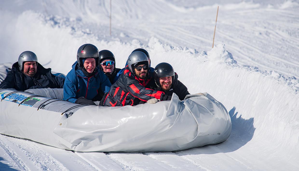 Schneerafting ist deshalb eine perfekte Teamaktivität für Freundesgruppen, Arbeitsteams, Junggesellenabschiede, Geburtstagsfeiern usw. Ein Happening voller Action, an das sie sich lange erinnern werden!