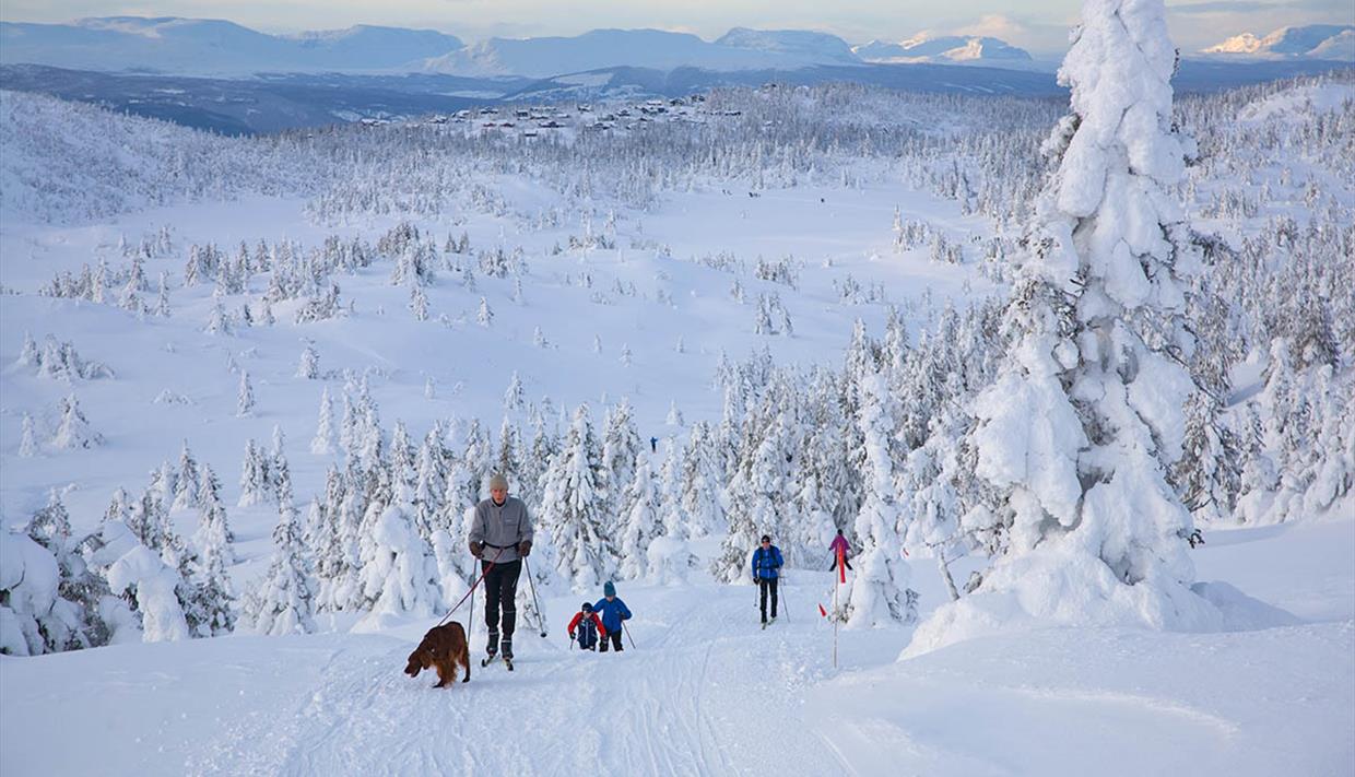 Fahren Sie auf der E16 nachAurdal und biegen Sie bergan nach Danebu ab (Mautstraße) und parken Sie am Aurdal Fjellpark. Von hier aus folgen Sie der Hauptloipe südostwärts via Storstølen in Richtung Kringlestølen, wobei Sie sich in allen drei Loipenkreuzungen geradeaus halten. Bei guten Verhältnissen wird manchmal in der Hauptsaison eine alternative Trasse entlang des Langevatnet gespurt, zusätzlich zur Hauptloipe, die entlang des Höhenzugs (1134 m) verläuft. Zum Gipfelpunkt der Bjørgovarden (1138 m) ist es ein 200 m langer Abstecher in gespurter Loipe.