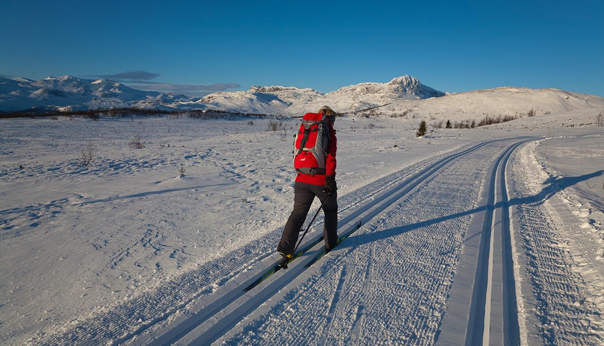 Die Tour startet entlang der 500 m langen Verbindungsloipe von der Bergstation des Skilifts zur Blauen 1, direkt unter dem Höhenzug Knausehøgdene. Hier biegen sie links auf die Blaue 1 und halten sich in der nächsten Kreuzung nach 800 m, wenn die Blaue 1 links abbiegt, geradeaus auf die Rote 1. 900 m später biegt die Blaue 3 links, und sie bleiben auf der Roten 1, die halb rechts ziemlich steil zum Olevatnet hinunter führt. Auf der anderen Seite der Talsenke steigen sie wieder auf bis in den Sattel beim Gravolstjednet. Nun folgt eine sanfte Abfahrt zum Vinstervatnet hinunter, und sie haben eine fantastische Aussicht in Richtung Jotunheimen. Jetzt sind sie ungefähr halbwegsund haben einen neuen, langen Aufstieg zum höchsten Punkt der Tour auf dem Sattel zwischen dem Svoloberget und dem Olefjellet vor sich. Danach folgt eine lange, steile Abfahrt zum Ostende des Olevatnet. Bei guten Schneeverhältnissen macht sie großen Spaß (Achtung Gegenverkehr!); ist die Loipe jedoch eisig und hart, empfehlen wir, die Skier abzuschnallen und zu Fuß abzusteigen. Weiter geht es in ebenem Gelände südwärts um den Olevatnet herum. In der Kreuzung bei Melbystølen können sie wählen, ob Sie auf dem letzten Stück der Roten 1 erst weiter hangabwärts und dann leicht ansteigend durch den Birkenwald folgen wollen oder auf der Blauen 1, die weiter oben parallel zum Hang entlangführt und dann über eine herrliche, lange Abfahrt in den unteren Alpinhang mündet, nach Beitostølen zurückkehren möchten. Beide Alternativen sind etwa gleich weit.