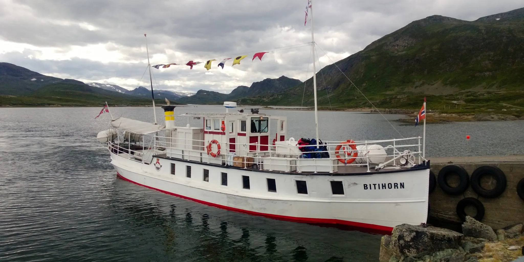 Bygdin - M/B Bitihorn - Tyinholmen (båtstur + 3,5 km; 75 Höhenmeter Steigung)