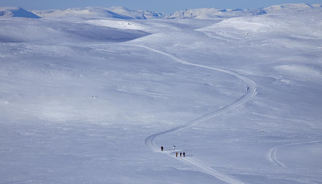 Wir beschreiben hier eine ca. 14 km lange Runde um den kleinen Bergsee Ormetjednet, in Richtung Rauddalsfjellet. Alle Loipenkreuzungen sind nummeriert, und wir beschreiben die Route von Kreuzung zu Kreuzung. Es empfiehlt sich, die Route unterwegs auf einer Karte mitzuverfolgen. Vom Parkplatz in Hellebekk nehmen sie die Loipe südlich der Straße zur Kreuzung H15. Gehen sie hier geradeaus und nach 600 m links. 400 m weiter erreichen sie Kreuzung H18. Hier biegen links (südlich) in Richtung Kreuzung H17 und Høvreslie. Die Loipe schlängelt sich hier an Hüttenfeldern vorbei und kreuzt einige Straßen. In der Kreuzung H17 gehen sie rechts, und nach 500 m bergan erreichen sie H20. Jetzt sind sie im Fjell - ordentlich im Fjell! Von H20 aus führen zwei Loipen zur Kreuzung H5 nördlich des Ormetjednet, und sie können beide nehmen. Die rechte (geradeaus) ist ca. 500 m kürzer. In der Kreuzung H5 halten sie sich rechts falls sie die innere, kürzere Route nördlich des Ormetjednet gewählt haben, und geradeaus, falls sie südlich des Ormetjednet gegangen sind. Nach ein paar hndert Metern liegt linker Hand eine hübsche, kleine Wärmehütte, die zu einer wohlverdienten Rast einlädt. Nun beginnt die Abfahrt zurück nach Hellebekk, und es gibt mehrere Möglichkeiten. Wir empfehlen, sich in der Kreuzung H4 geradeaus zu halten und auf direkter Route via H19 abzufahren. Von Kreuzung H18 können sie entweder der südlichen Loipe, auf der sie gekommen sind, oder der nördlichen zurück zum Auto folgen.