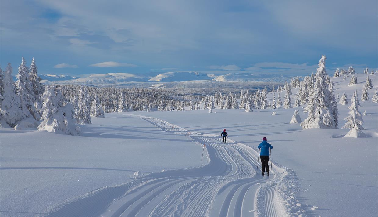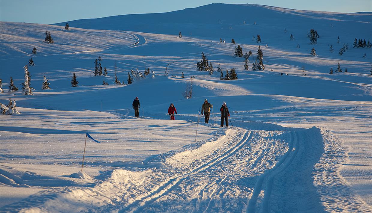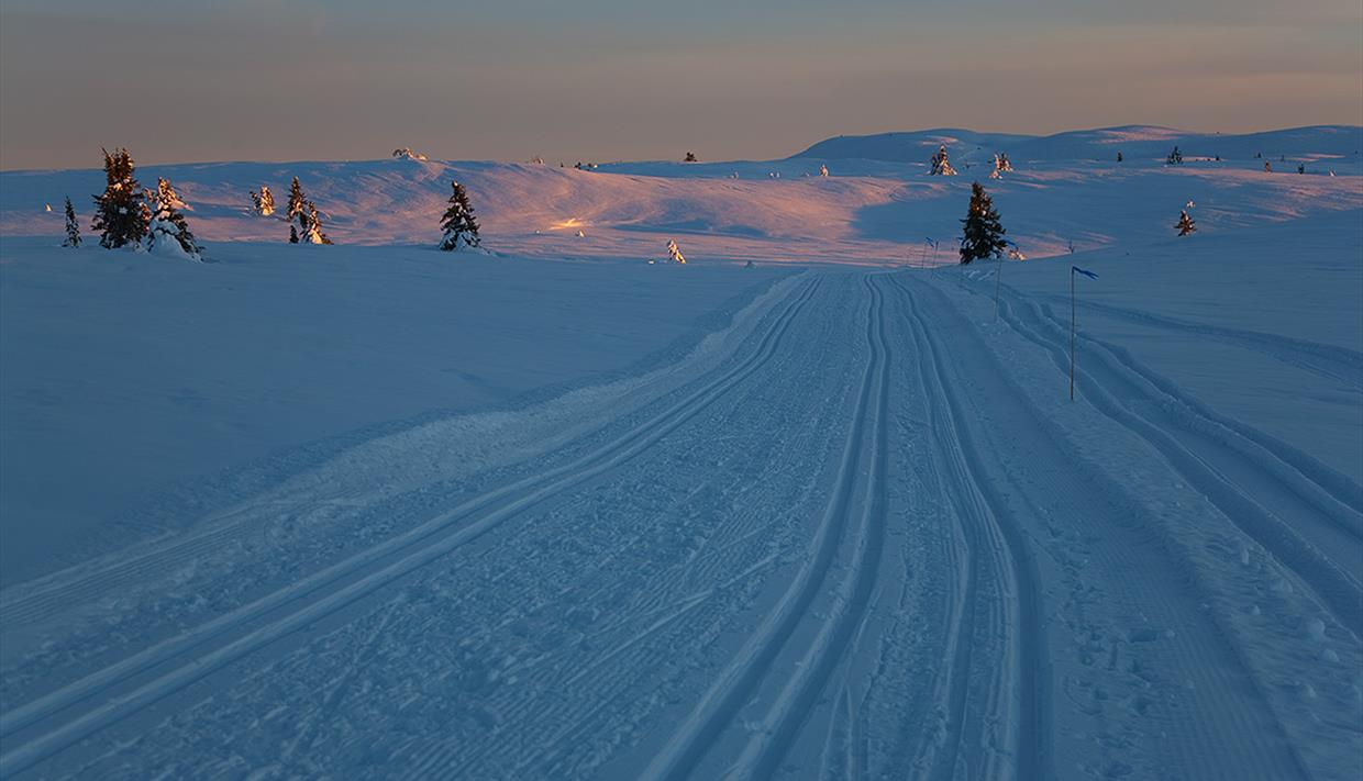 Die Rundtour startet und endet auf der gegenüberliegenden Straßenseite. Halten sie sich zuerst links bergan nach Tveitastølen. Hier überquert die Loipe eine ca. 2 km weite Moorfläche. Am anderen Ende teilt sich die Loipe, und sie biegen links für einen neuen Anstieg. Dieser führt sie zum und südlich um das Smørlifjellet (halten sie sich in den nächsten beiden Kreuzungen geradeaus). Kurz vor dem höchsten Punkt im Sattel im Südosten können sie einen Abstecher außerhalb der Loipe zum Gipfelpunkt (1160 m) unternehmen. Anschließend wartet eine lange, herrliche Abfahrt mit dem Binnhovdkantten im Visir zur nächsten Loipenkreuzung, wo man bei schönem Wetter im Sonnenhang eine Rast einlegen kann. Hier biegen sie rechts kurz, aber ziemlich steil bergan und dann länger, aber ebenfalls steil und kurvig bergab nach Pilset. Bei hartem Schnee kan diese Abfahrt anspruchsvoll sein. Zum Schluss geht es zurück über Tveitastølen nach Kruk.